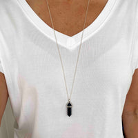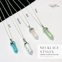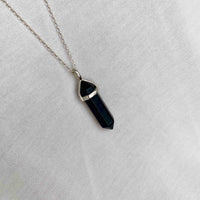Stunning sterling silver crystal point necklace featuring a striking deep blue goldstone point pendant, with sparkly flecks that look like the night sky. Pendant sits beautifully on all our chains, choose a style and length perfectly suited to you.