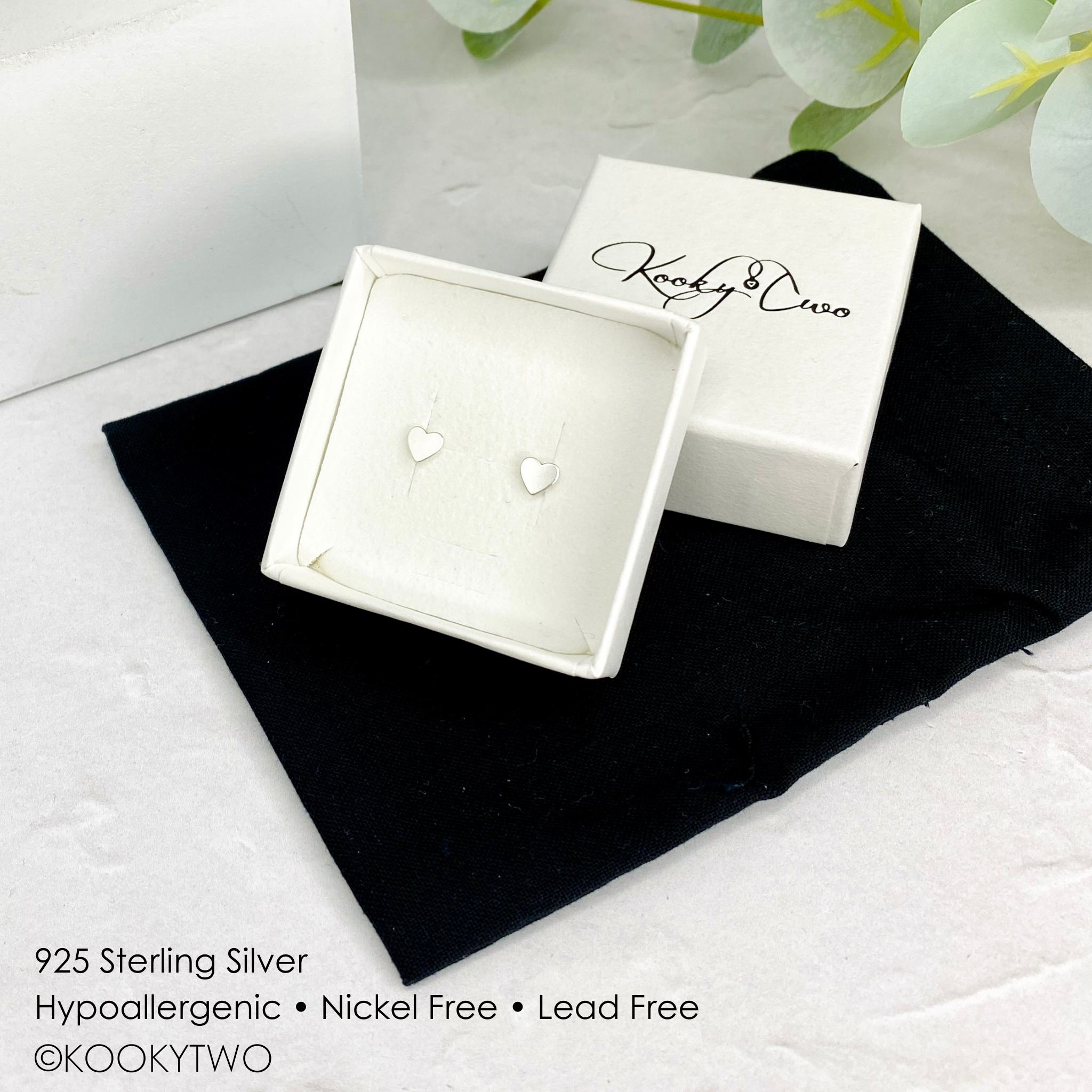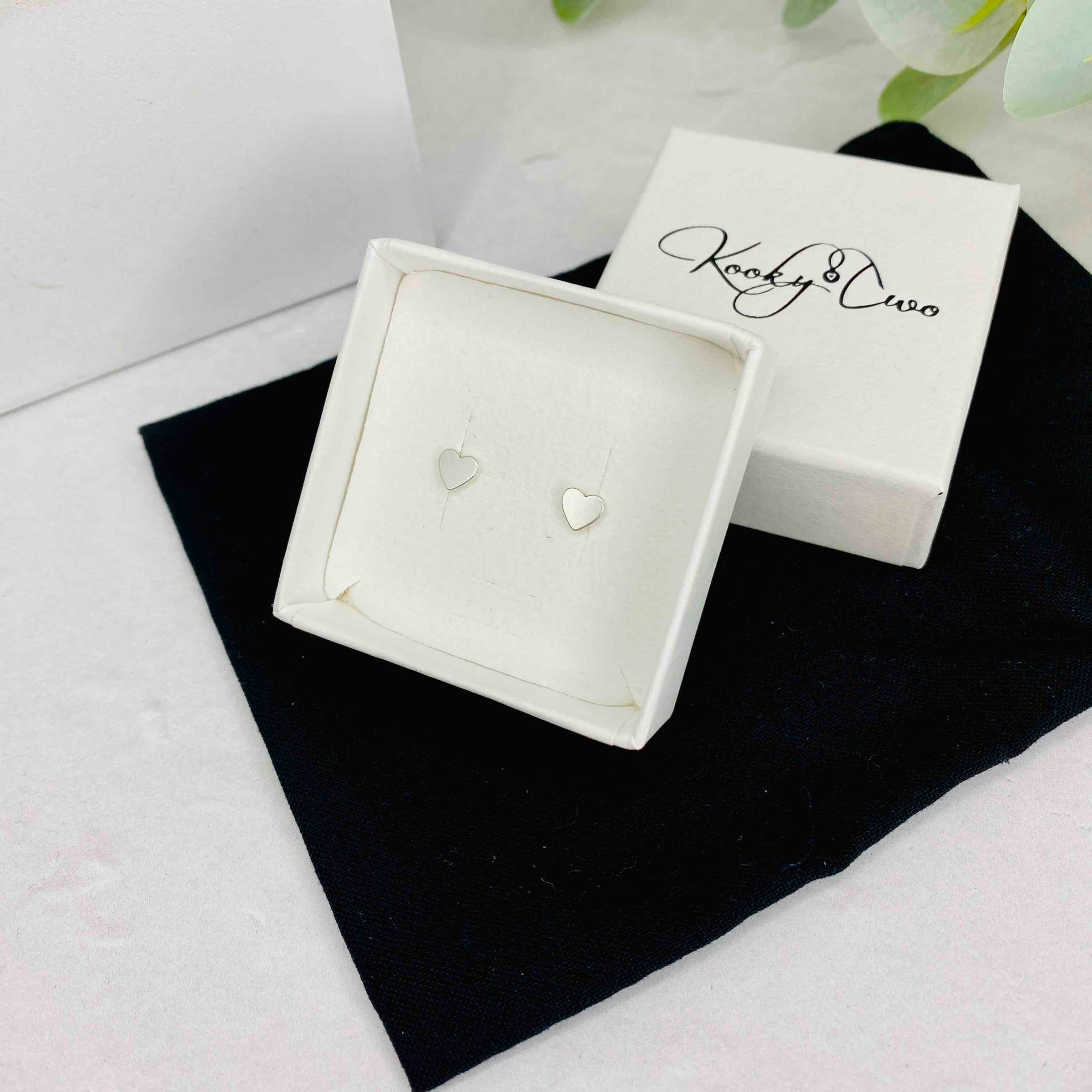 Gorgeous simple sterling silver heart stud earrings, perfect for adding a little shine to any outfit. Wear your heart on your sleeve... or your ears!