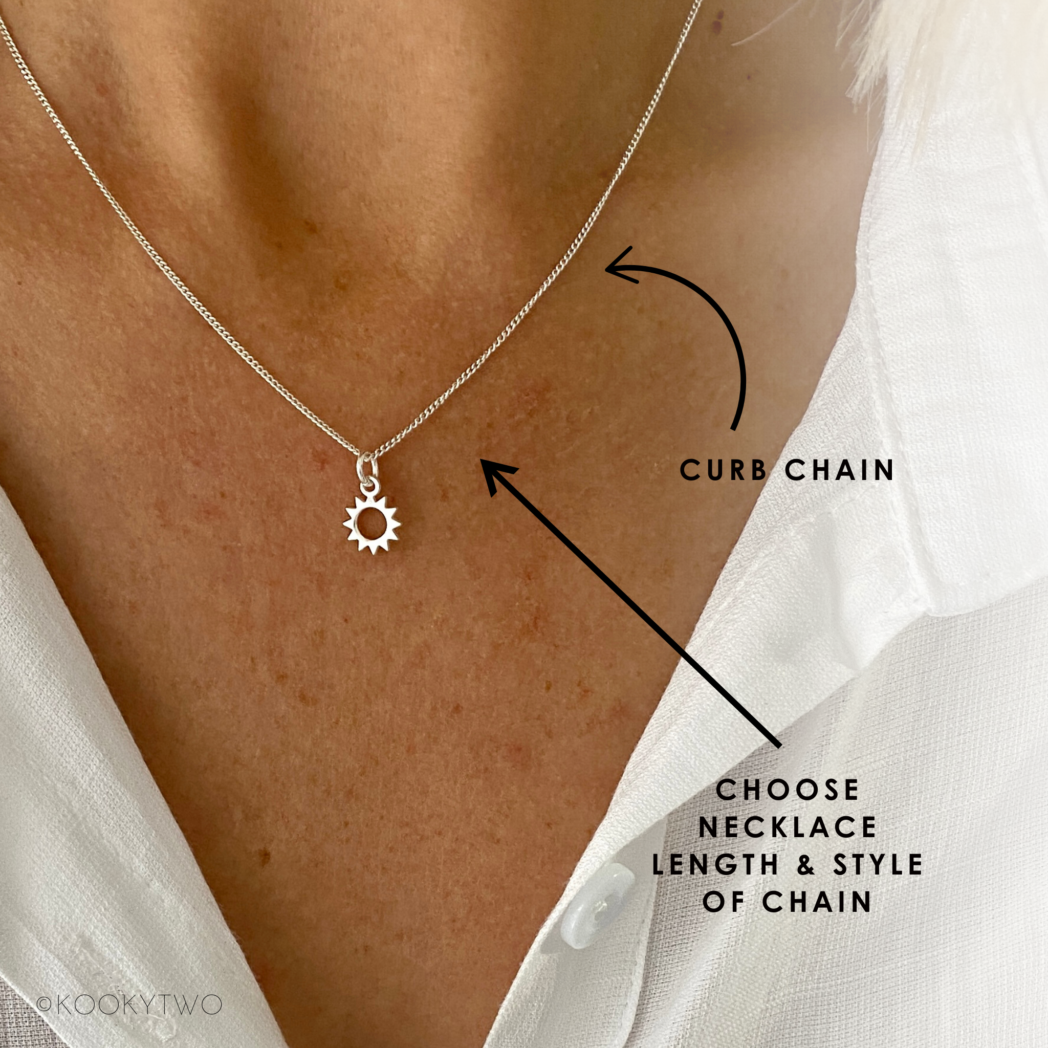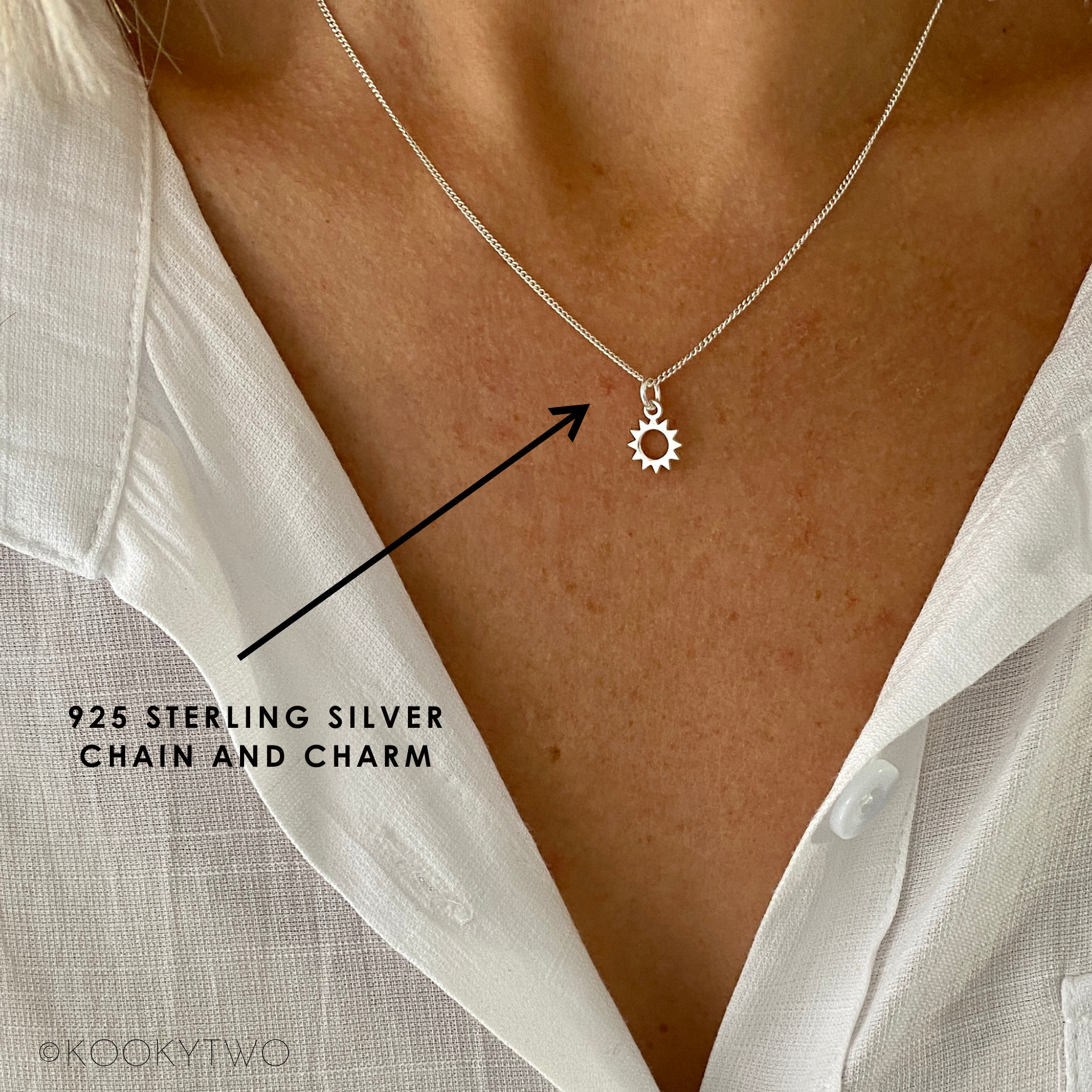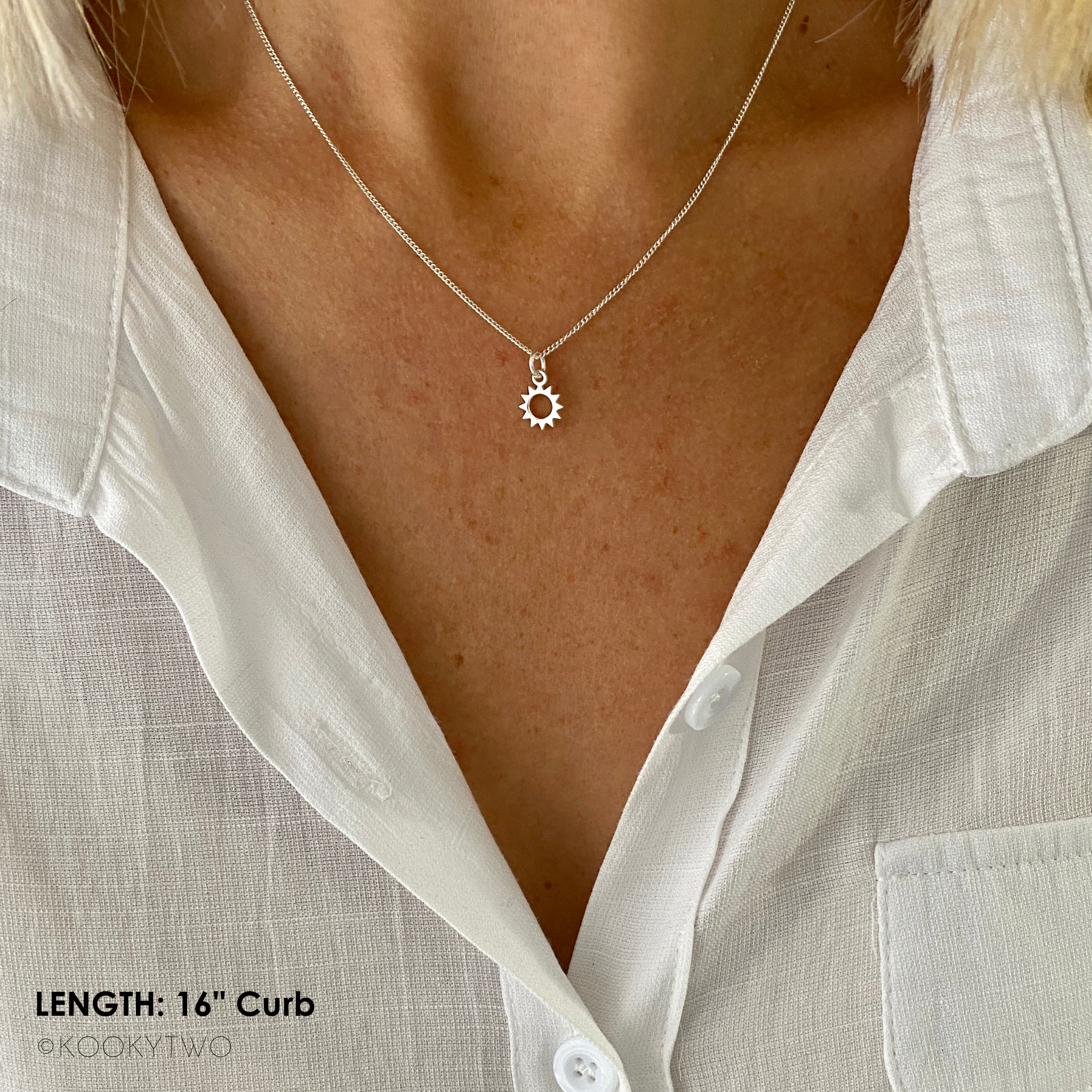 Pretty sterling silver sun necklace. This lovely dainty sun charm is available on a choice of sterling silver chains.