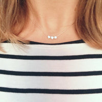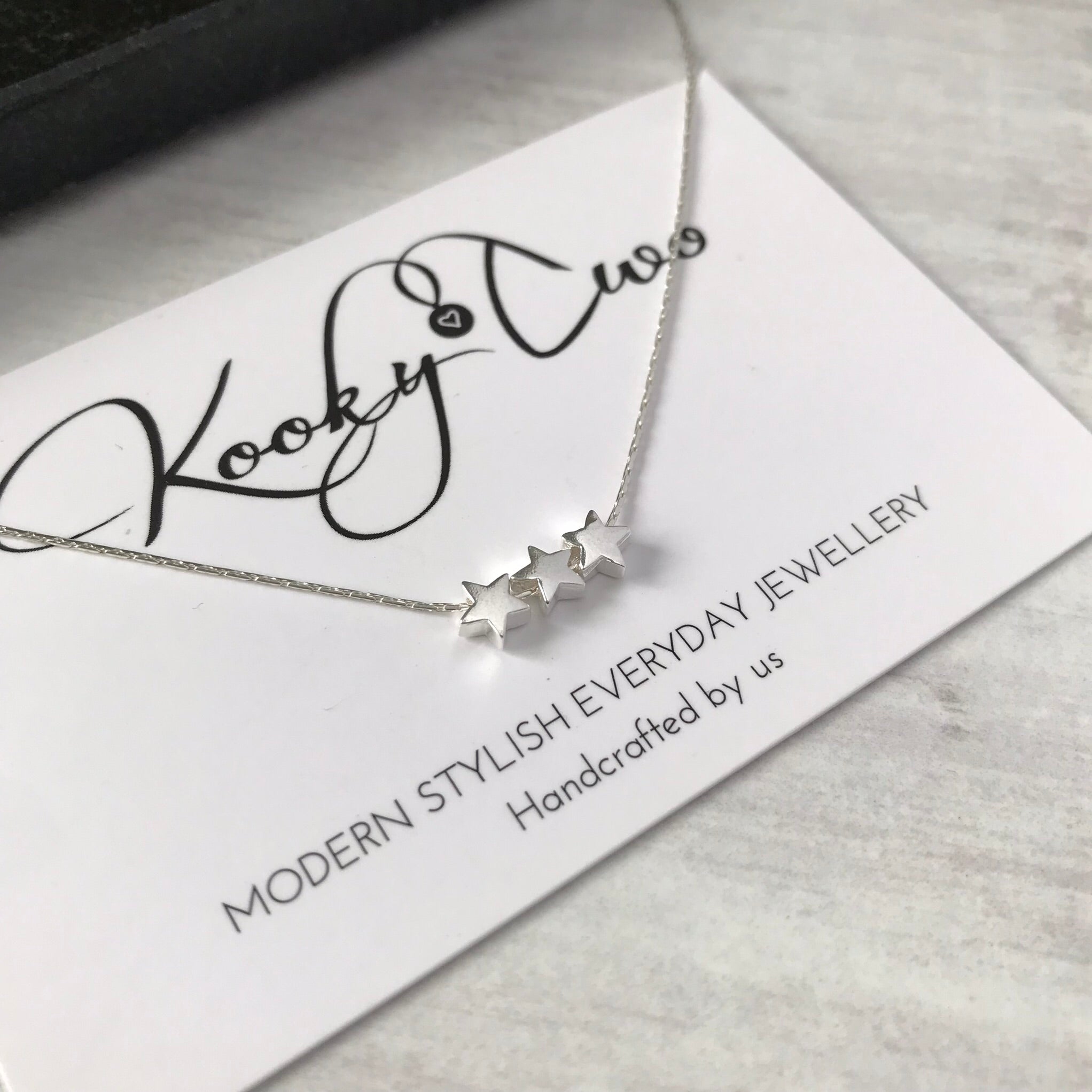 Simple and modern sterling silver trio star bead necklace, handmade using a delicate link chain.